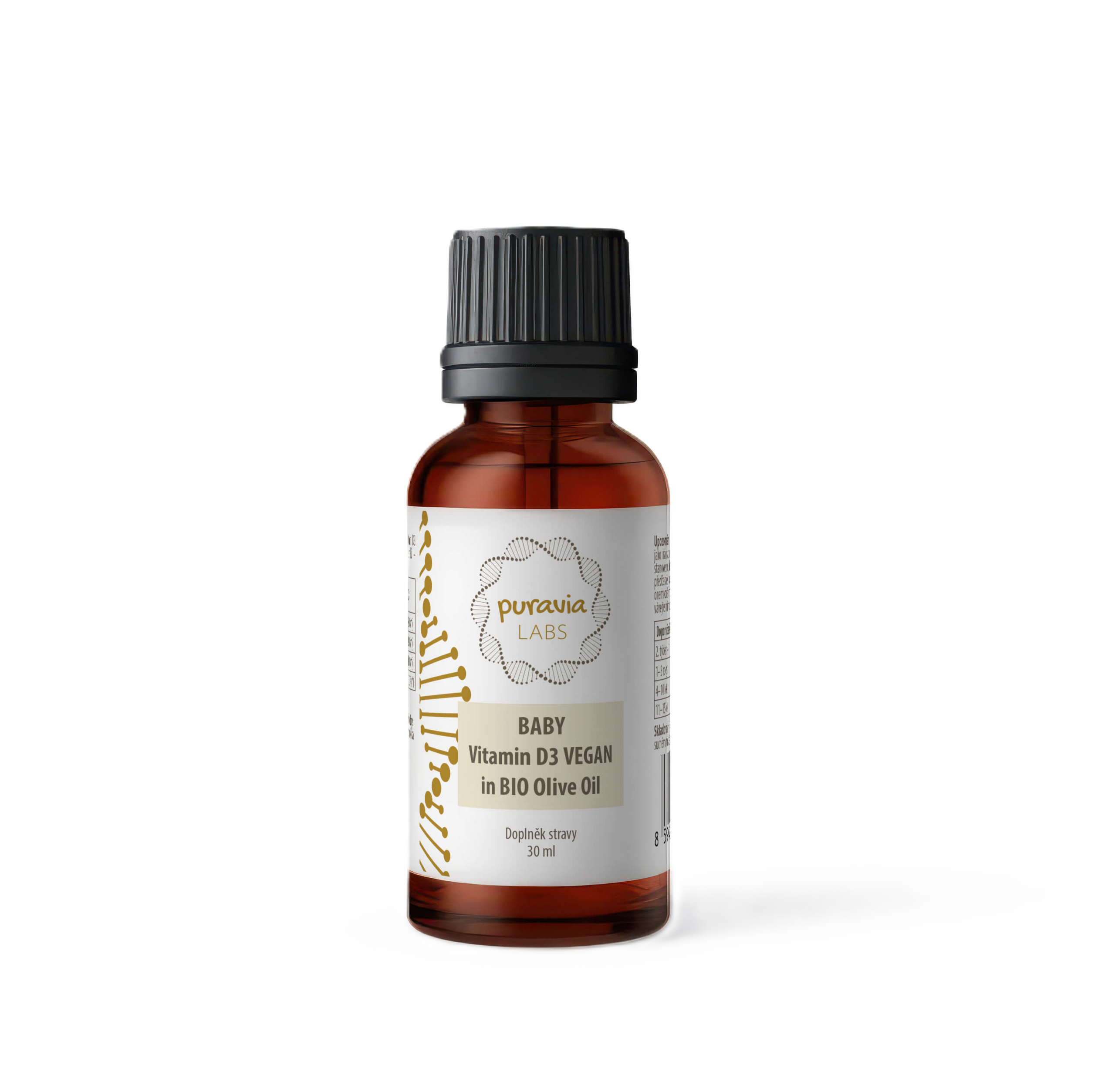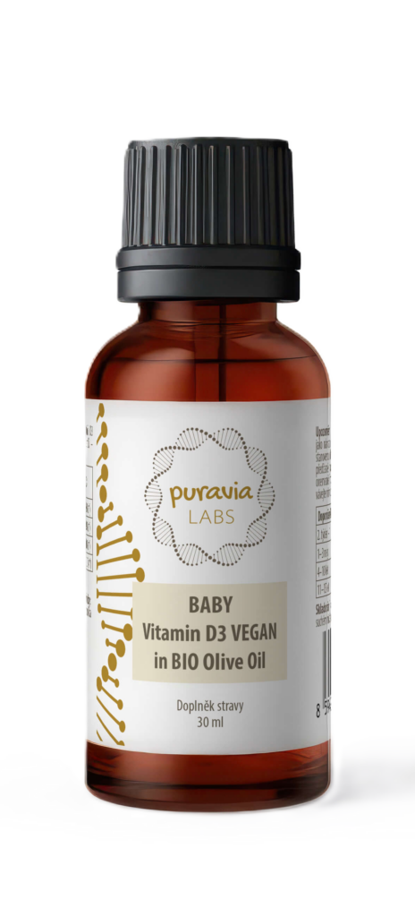 Baby Vitamin D3 Vegan je šetrná a bezpečná rostlinná forma vitamínu D3 určená pro miminka už od 2. týdne života až do 15 let věku bez nutnosti měnit produkt. Díky promyšlenému dávkování a kvalitnímu BIO olivovému oleji zajistí přirozenou podporu imunity a správný růst kostí vašeho dítěte. Produkt neobsahuje žádné syntetické přísady, konzervanty ani dochucovadla – jen čistou a účinnou péči.