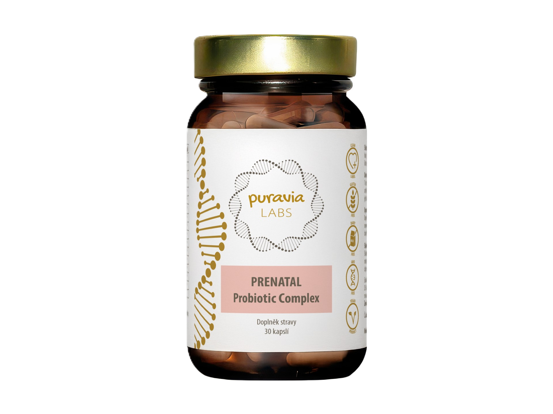 Náš PRENATAL PROBIOTIC COMPLEX kombinuje 15 vědecky zdokumentovaných kmenů laktobacilů a bifidobakterií v množství 19,1 miliardy CFU v jedné kapsli – v kvalitě, která splňuje nejvyšší standardy pro výživové doplňky pro těhotné a kojící ženy.