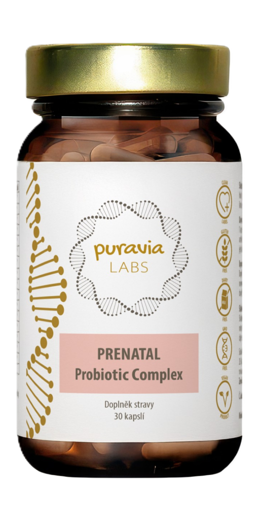 PRENATAL Probiotic Complex jsou jedinečná probiotika, která spolupracují s mateřským mlékem a pomáhají rozvíjet zdravý střevní mikrobiom miminka již od prvních dnů života.